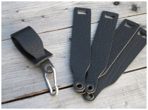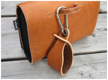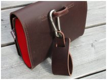 Die Lederschlaufe wird um den Gürtel gelegt, ohne diesen vorher abnehmen zu müssen.