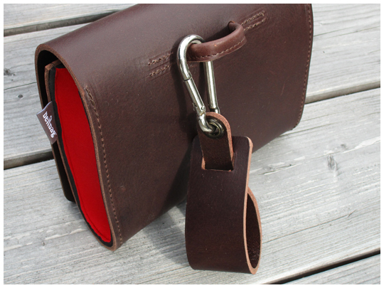 Ein Karabiner verbindet dann die Tasche mit der Schlaufe – fertig.